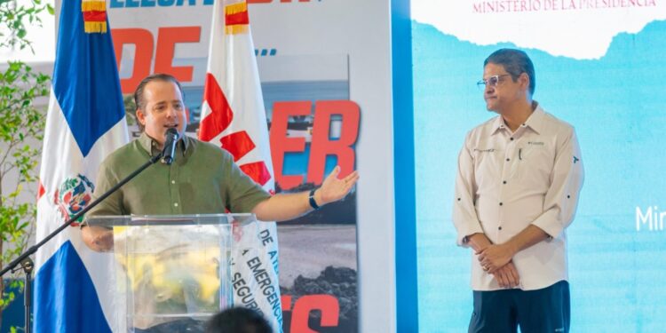 Pedernales, 25 de septiembre de 2025.- El ministro de la Presidencia, José Ignacio Paliza, encabezó este jueves la puesta en funcionamiento del Sistema Nacional de Atención a Emergencias y Seguridad 911 y la inauguración de un Centro de Superación Comunitaria (CSC) en la provincia de Pedernales, con la finalidad de resguardar las vidas de sus habitantes y promover su formación e inserción laboral.