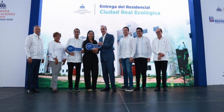*Santo Domingo Este. –* El presidente Luis Abinader encabezó una nueva entrega de apartamentos en Santo Domingo Este que ahora se suman a las más de 20 mil viviendas entregadas en cinco años de gestión, contribuyendo de manera significativa a la reducción del déficit habitacional en el país.